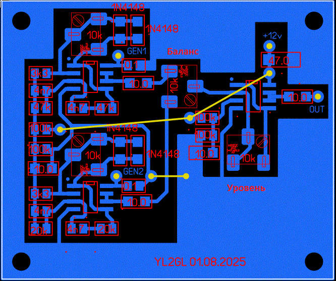 Для управления генераторами лучше сделать коммутацию включением-выключением их питания, а не как на схеме, по сигнальным цепям, что и предусмотрено в рисунке печатной платы - тумблеры припа ... Читать дальше » |